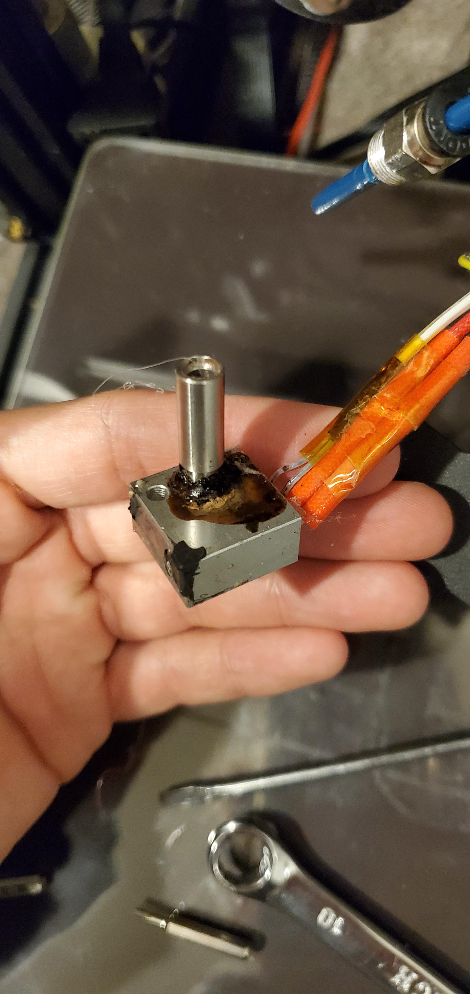 In effect, because i wanted to reach higher temperatures, i also changed the thermistor with one that is 3mm wide and does not have the bead shape... If you got the same problem i had though, there was melted plastic inside, so i had to heat my hot end up to printing temp so i could pull it out. Ask question asked 18 days ago.. This is what it looks like.